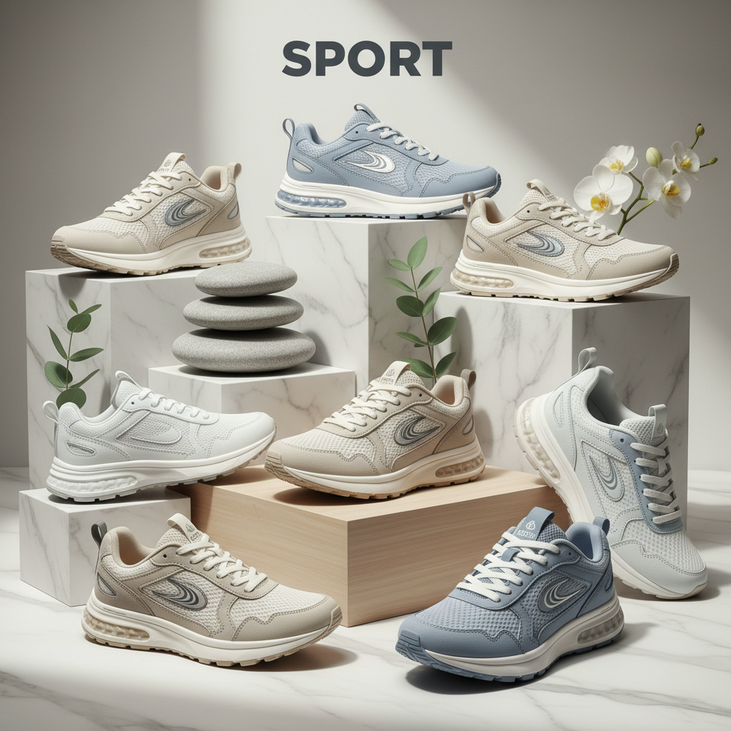 Chaussures de sport conçues pour offrir un bon équilibre entre confort, maintien et légèreté.